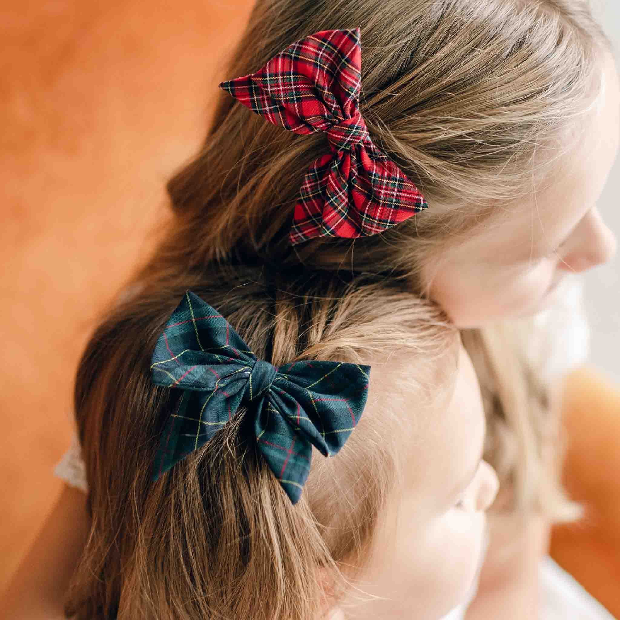The Cotton Bow Hair Clip is crafted with elegant style, a cotton bow in red and white striped and red or blue plaid, crafted in a timeless tails style, on an clip. A sophisticated yet modern accessory to complete her Holiday outfit! Perfect to coordinate with our Gabriel, Gabriella, Cole, Colette, Nicholas and Nicole outfits and accessories.